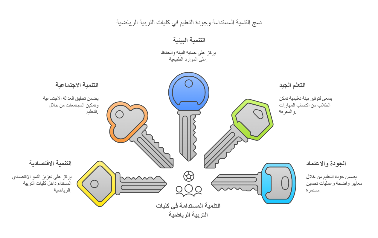 تعتبر التنمية المستدامة وتنمية التعلم الجيد عنصرين مترابطين في إطار جودة التعليم والاعتماد البرامجي لكليات التربية الرياضية. من خلال دمج هذه المبادئ، يمكن إعداد خريجين مؤهلين قادرين على مواجهة التحديات الصحية والبيئية والاجتماعية. يتطلب ذلك جهودًا مشتركة من جميع الأطراف المعنية، بما في ذلك الإدارة، أعضاء هيئة التدريس، والطلاب، لضمان تحقيق الأهداف المرجوة وتعزيز التنمية المستدامة في المجتمع.