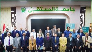 تكريم عميد كلية التربية البدنية وعلوم الرياضة في جامعة الحلة خلال فعاليات الملتقى العلمي الأول لمشاريع التخرج في جامعة المستقبل