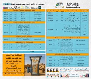 يسرّ جامعة الحلة أن تضع بين أيديكم معدلات القبول، والأجور الدراسية، والفروع المشمولة بالتقديم في جميع أقسامها، فضلًا عن الأقسام التي هي قيد الاستحداث.